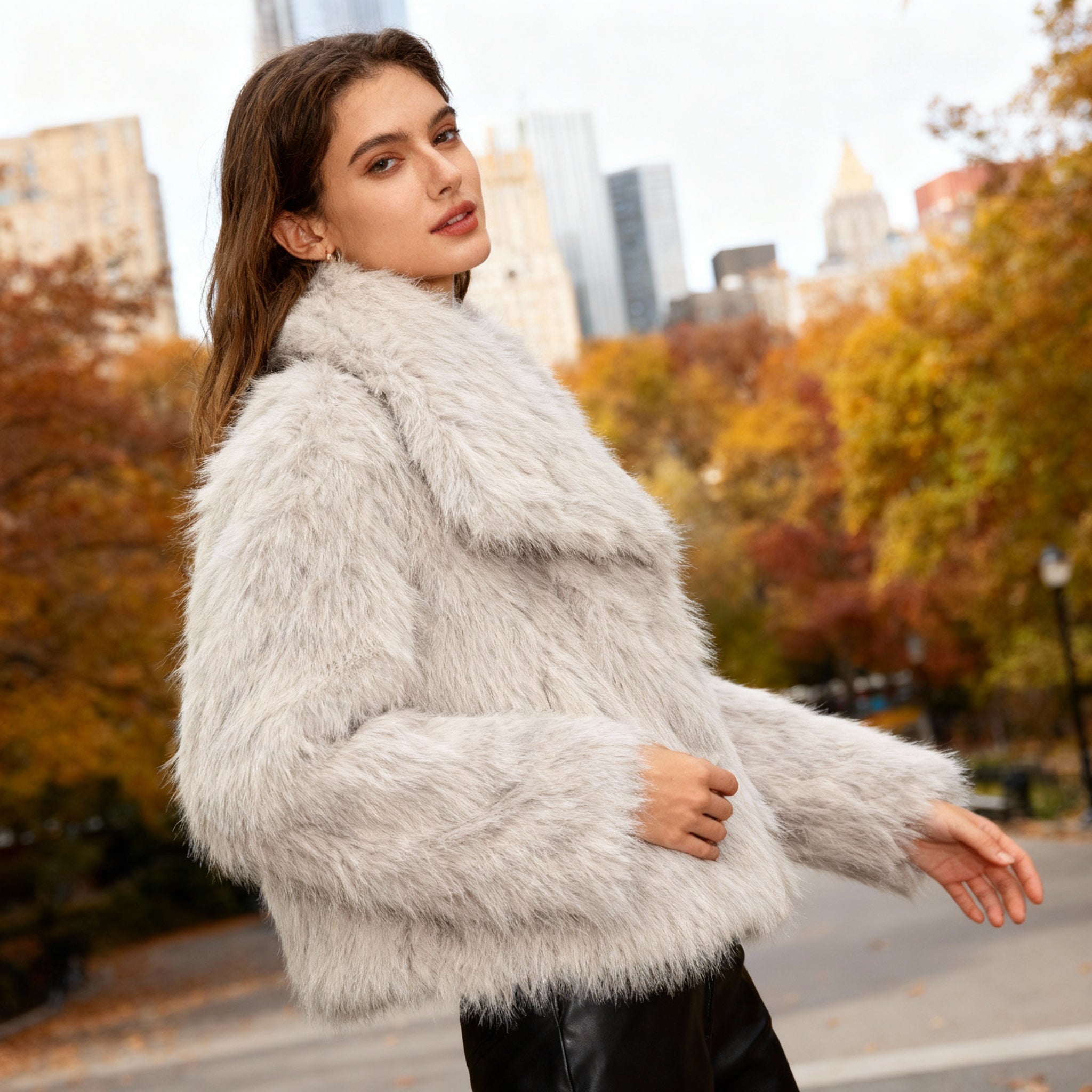Casaco de Pelo Elegante e Macio com Gola Fofa – Perfeito para o Inverno